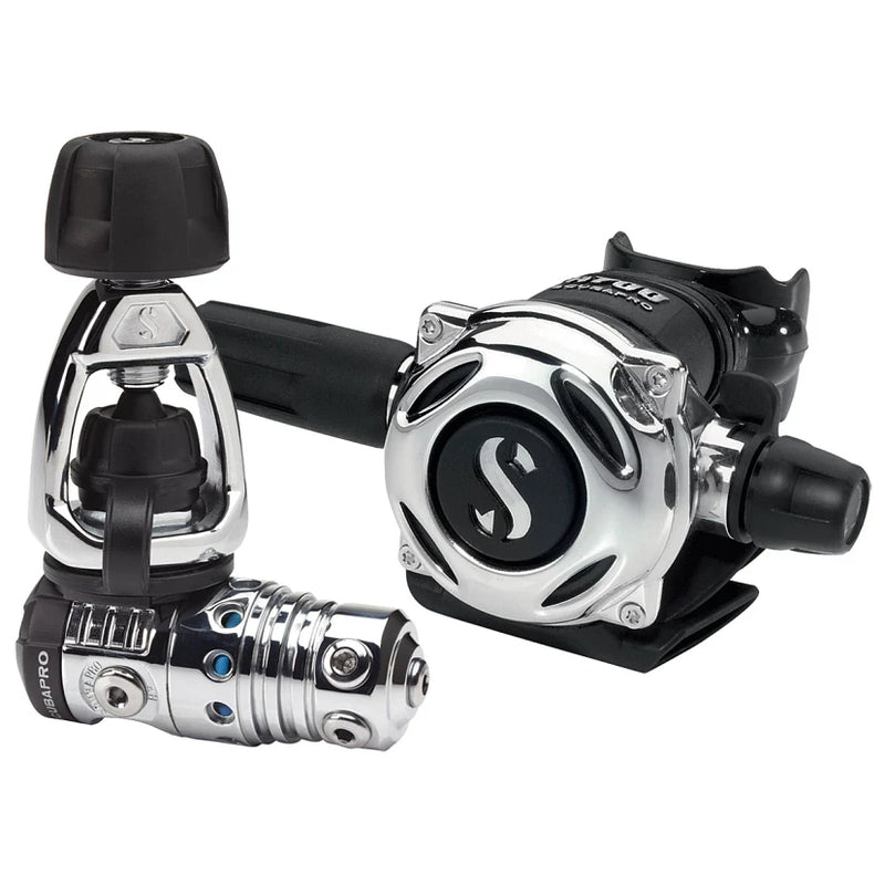 - Air balanced piston first stage in a chrome-plated body delivers consistent and effortless airflow, regardless of depth, tank pressure, or breathing rate.