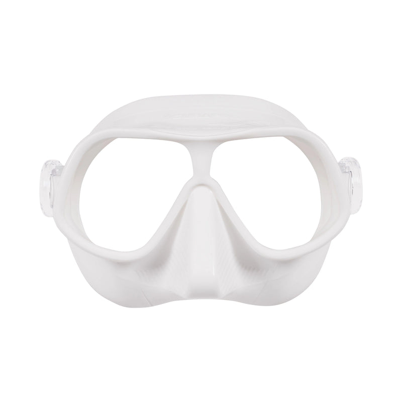 The ultimate freediving mask, the dual lens STEEL COMP is particularly well-suited to deep diving. It has the lowest possible internal volume so equalizing is easy. Plus, on descents the mask itself compresses, so equalization is not required as often. The skirt is very effective at blocking out light reflection at depth. The soft skirt and rotating buckle system allow for a comfortable, watertight fit on most faces.